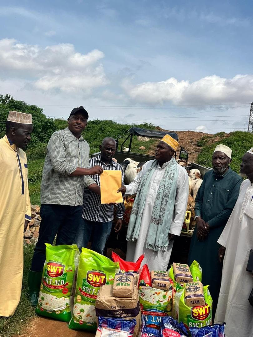 The gifts included assorted food items to the congregation led by Sheikh Mbogo.